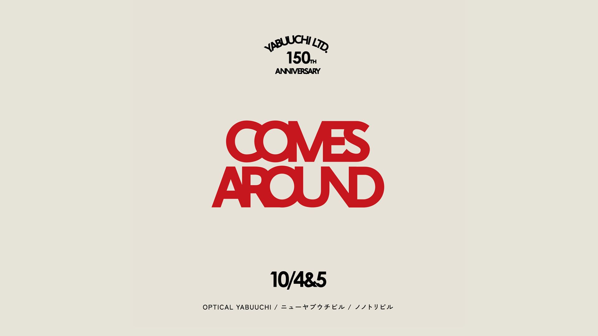 そしてこの通りにある眼鏡屋が「OPTICAL YABUUCHI(オプティカルヤブウチ)」です。今回、このOPTICAL YABUUCHIが150周年になることを記念し、150周年イベント「COMES AROUND」を10月4日(土)~10月5日(日)に開催します!