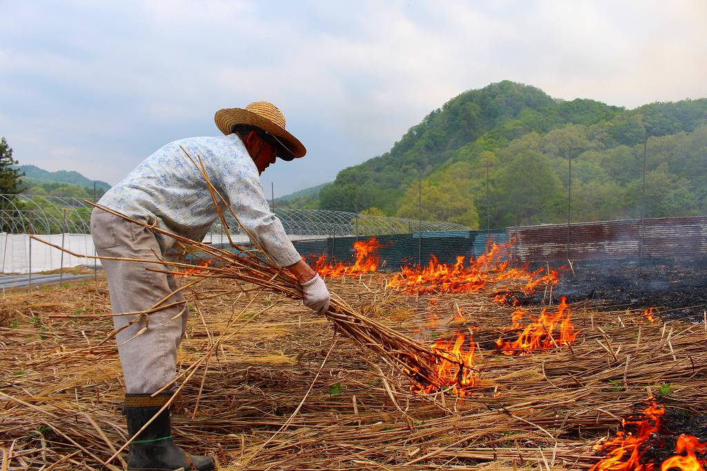 からむし焼きは、旧暦4月の中の日(5月21日の小満の日)を目安に行っています。これは、からむしの発芽がばらばらなので、先に出た芽を焼くとともに根に刺激を与えて一斉に発芽させるために行います。 また、害虫の駆除や焼いた灰を肥料にする意味もあります。からむしの栽培が最も盛んだった大正以前には、村中で火がつけられ、夕空をこがして壮観だったようです引用:からむし織の里 福島県昭和村ホームページ